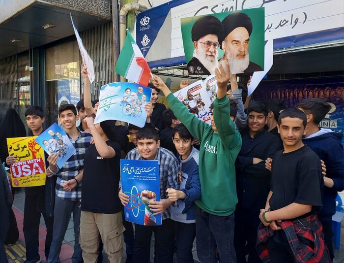دانشآموزان با در دست داشتن تمثالهای رهبر معظم انقلاب و امام راحل، تصاویر سید حسن نصرالله و سردار سلیمانی، پرچمهای مقدس جمهوری اسلامی ایران و فلسطین، نمادهای مقاومت و پیشانیبندهای منقش به نام مبارک حضرت زهرا(س)، روحیهای سرشار از ایمان و مقاومت را به نمایش گذاشتند.